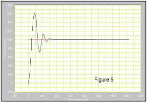 11. Decrease the Derivative Gain (Kd) by a factor of 1.5 from the original value (or a factor of 2.25 from the current value). Decreasing by a factor of 2 works for most systems, but if your system becomes unstable decrease this factor appropriately. 12. View the Step Response plot. It should resemble Figure 5. As you decrease the derivative gain, the maximum overshoot increases while the settling time decreases. The number of visible oscillations increases as well. Decreasing by a factor of 2 usually results in a noticeably higher overshoot. If this is not true for your particular system, try decreasing your gain even more.